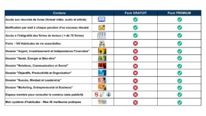 Bref, l’objectif est simple : vous faire économiser des milliers d’heures de lecture en vous aidant à intégrer facilement les principes des ouvrages les plus influents du développement personnel.